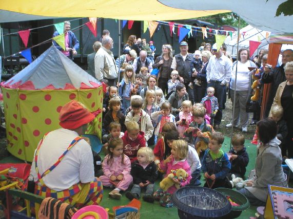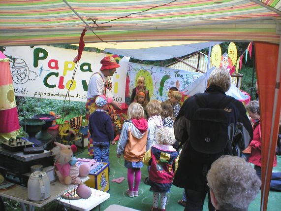 Der Kinderclown "Papa Clowni" unterhielt pausenlos die Kinder mit seinen Spaessen, Spielen und Mitmachgeschichten. Kein Kind ging bei Papa Clowni mit leeren Haenden nach Hause. Nach jeder Aktion mit den Kleinen hielt Papa Clowni stets fuer Jeden eine Kleinigkeit bereit.