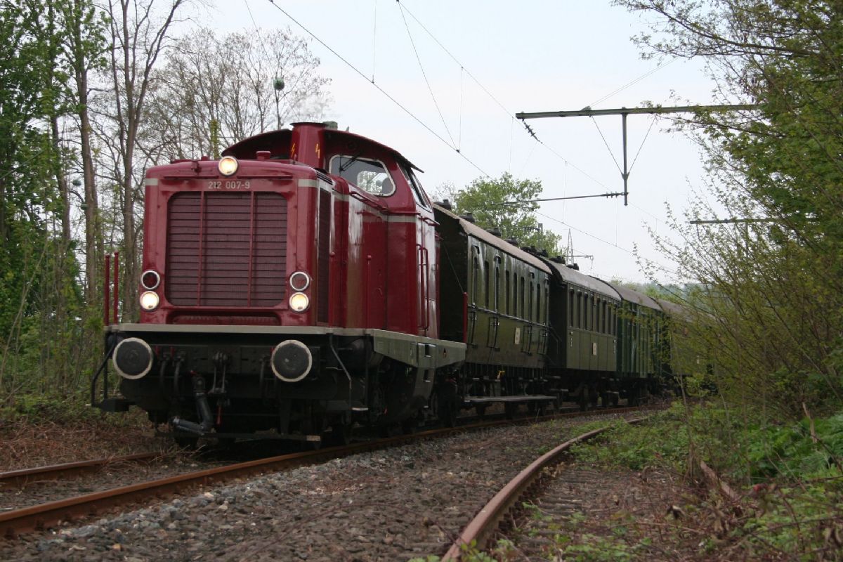 Links: Die V100 (212 007) aus BO-Dahlhausen zieht den 2. Pendelzug, welcher zwischen Museum und Hbf Bochum hin und her fuhr.