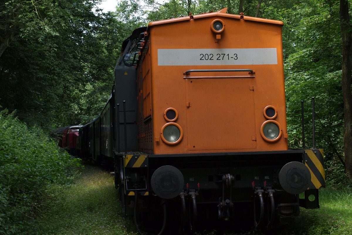 Die Zuglok des Sonderzuges, die V100 Ost (202 271-3) der Bocholter Eisenbahngesellschaft.
