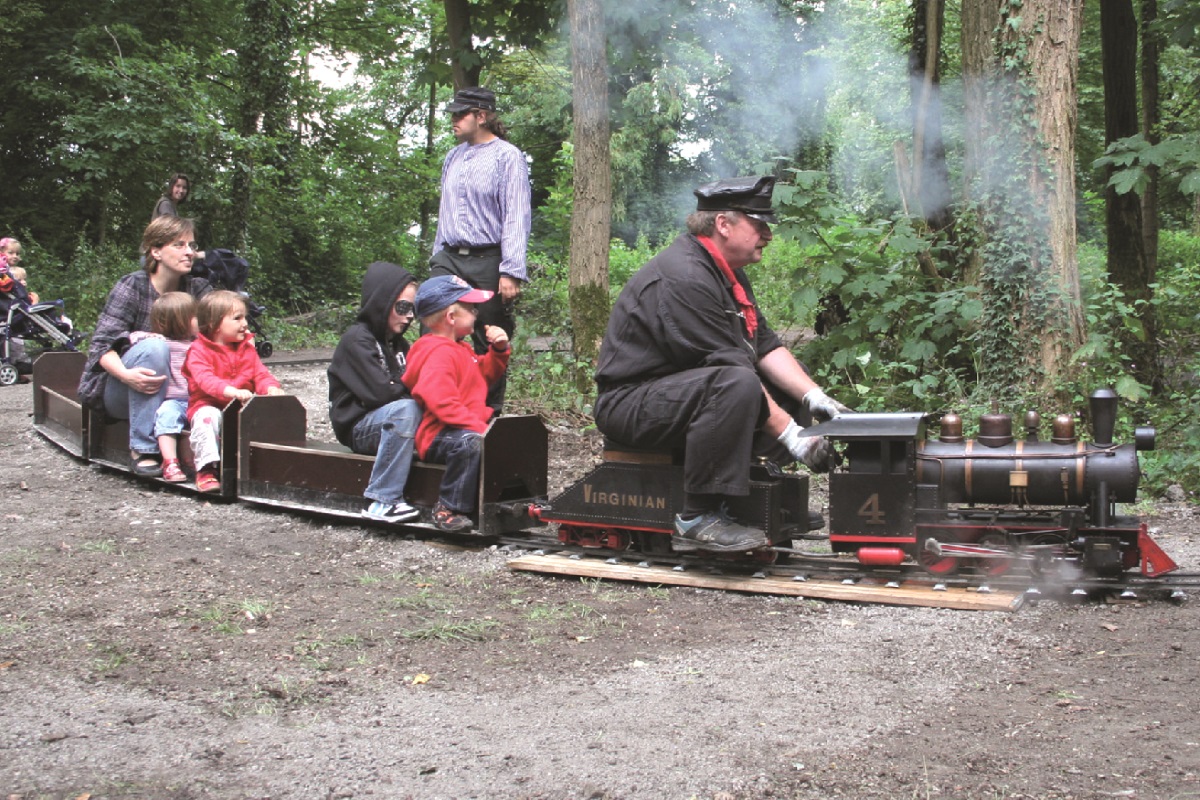 Die kleine 5 Zoll Echtdampflok "Virginian" hatte am Endhaltepunkt in Haus Scheppen gut zu tun. Dabei waren nicht nur die Kinder begeistert.