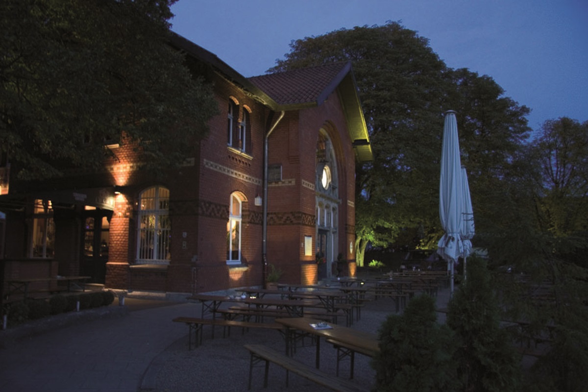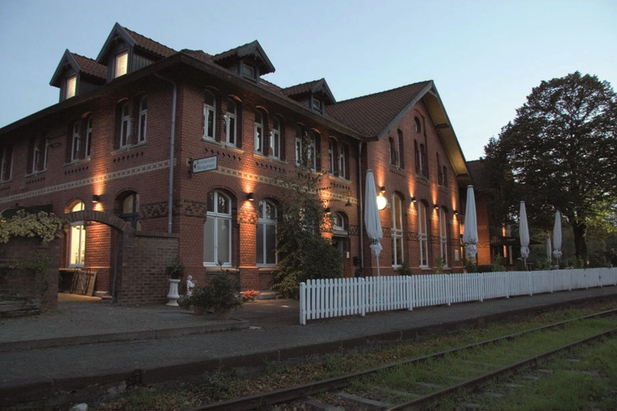 Das zweigeschossige Bahnhofsgebaeude ist aus rotem Backstein errichtet und entsprechend dem damaligen Repraesentationsbeduerfnis sehr ausdrucksvoll gestaltet. An den Laengsseiten sind verschieden grosse Fenster abwechselnd angeordnet. Der Vorhalleneingang ist im Rundbogenstil errichtet und mit ockerfarbenem Sand-stein verziert. Heute ist teilweise der Dekor in den Wartesaelen noch erhalten. Bei der Renovierung zur heuti-gen gastronomischen Nutzung des ehemaligen ersten Klasse Wartesaales wurden die Ornamente komplett renoviert.