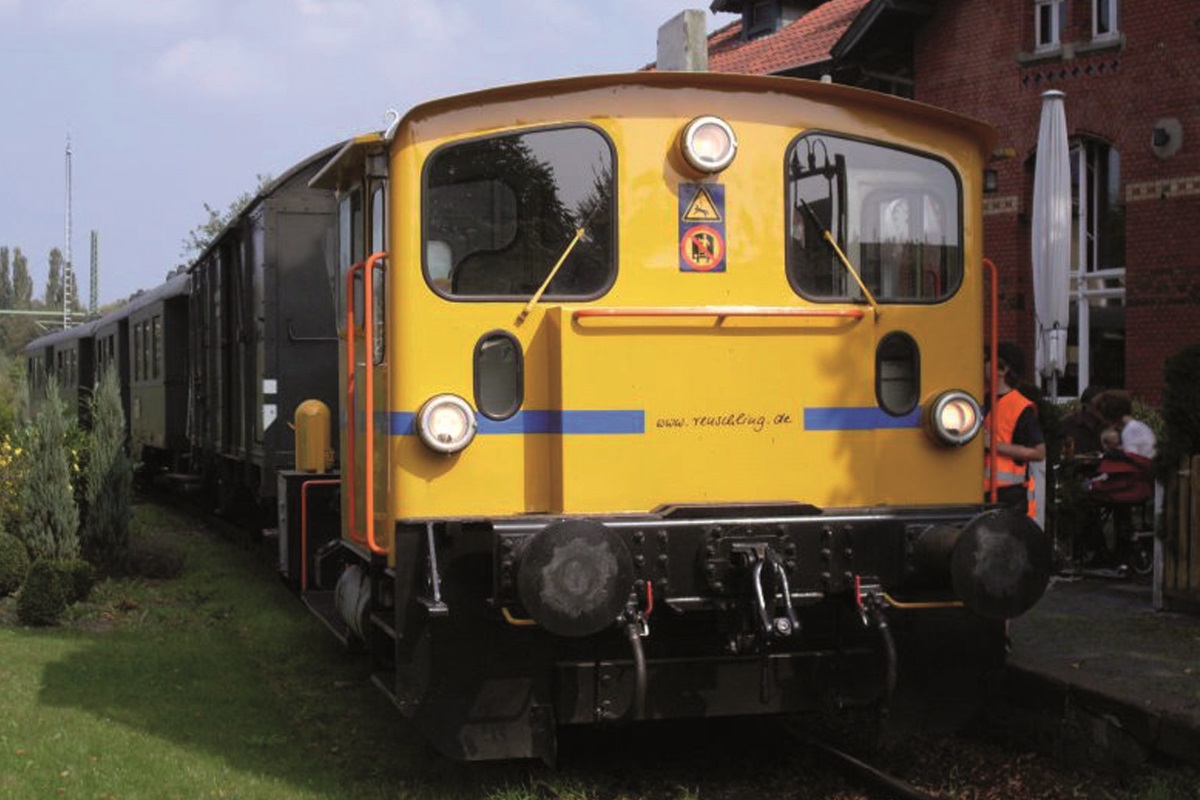 Die Hespertalbahn im Einsatz beim Bahnhofsjubilaeum Das Lukas, der "Kulinarische Bahnhof" im Alten Bahnhof Essen-Kupferdreh, feierte am 19.09.2009 111 Jahre Koeniglich Preussische Bahnhof zu Kupferdreh. Aus diesem Grunde fuehrte die Hespertalbahn an diesem Tage im Auftrag des Lukas ab 13 Uhr nach normalem Fahrplan 4 Sonderfahrten durch. Fuer die Fahrgaeste waren die Fahrten kostenlos. Leider konnten die 4 Sonderfahrten nicht stielgerecht mit Dampf durchgefuehrt werden, da unsere Dampflok D8 mit den beiden zwei-achsigen Personenwagen zur gleichen Zeit im Pendeleinsatz bei den Museumstagen im Eisenbahnmuseum Bochum-Dahlhausen war. Auch die Diesellok V9 stand nicht zur Verfuegung, da sie an einem Motorschaden leidete. Zur Schonung der alten dieselgetriebenen Dame lieh sich der Verein bei der Firma Reuschling in Hattingen eine quietschgelbe Koef III. So fuhr dann am 19.09.2009 ein ungewohnter Museumszug, bestehend aus der gelben Koef III, den beiden vierachsigen Personen- und dem zweiachsigen Gueterzug-Gepaeckwagen, am Suedufer des Baldeneysees entlang. (Klicke auf die Bilder)