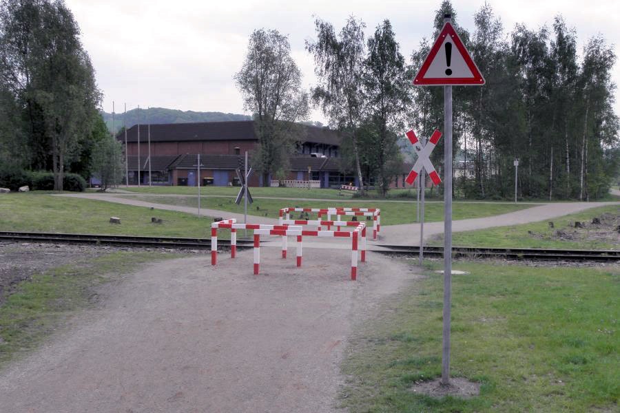 Der neue "kleine" Bahnuebergang ist nun offiziell in Betrieb. Dieser Bahnuebergang befindet sich in der Verlaengerung der alten Eisenbahnbruecke zwischen Essen-Heisingen und Essen-Kupferdreh, vorbei am Eisenbahner-Sportverein (ESV) und der Kupferdreher Sporthalle Richtung Deilbachtal.