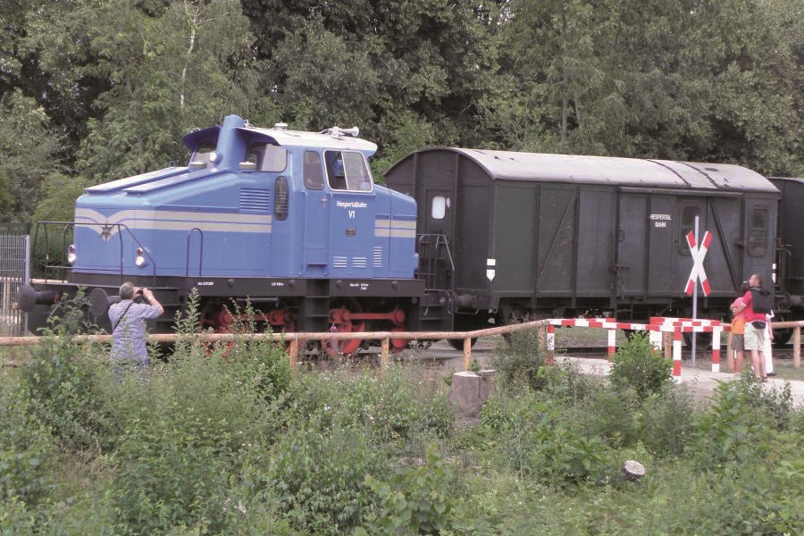 Der neue "kleine" Bahnuebergang offiziell in Betrieb In Verbindung der Raderlebnis Route Sued (dem dritten Rundkurs, welcher ins Ruhrtal rund um den Baldeneysee fuehrt) mit dem Kulturpfad und der Museumslandschaft Deilbachtal hat die Hespertalbahn einen zusaetzlichen Bahnuebergang bekommen.