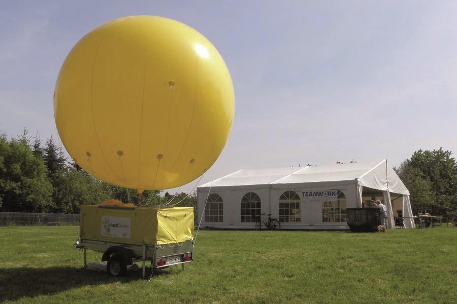 Am ehemaligen Schacht 3 (Ludscheidtstrasse) konnte aufgrund des hohen Baumbewuchses kein Ballon aufsteigen. Die Ballonpatenschaft fuer den bekannten ehemaligen Schacht 2 (an der Seilscheibe) wurde fruehzeitig von BMW Motorraeder uebernommen. Somit blieb fuer die BV IX nur die Ballonpatenschaft fuer den unbekannteren ehemaligen Schacht 1 in den Fischlaker Hoefen uebrig. Dieser liegt mitten im Gruenen auf einem Grundstueck eines ansaessigen Bauern, welcher mit Anwohnern auch die technische Betreuung des Ballons uebernahm.