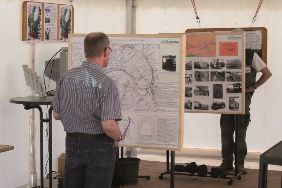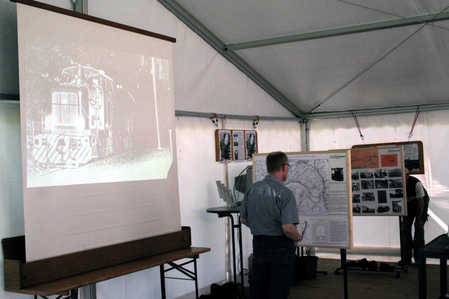Hier kam dann die Hespertalbahn ins Spiel. Neben der Standortbetreuung an den beiden Wochenenden ermoeglichte die Hespertalbahn eine Dauerausstellung ueber die ehemalige Bergbauregion.