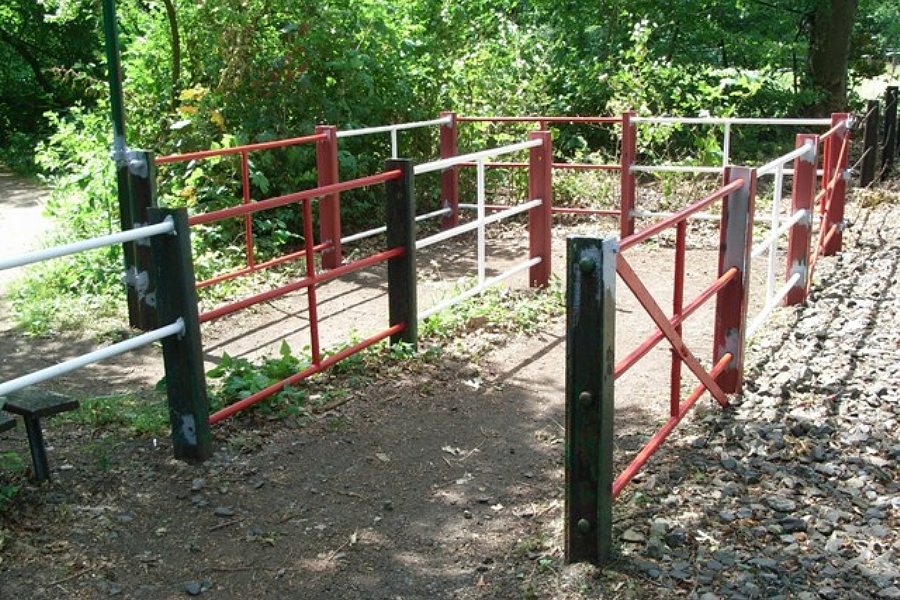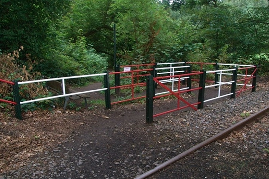 Aufarbeitung der Umlaufgitter am Bahnuebergang 2 Bei Museumsbahnen muessen nicht nur Schienenfahrzeuge und Gleisanlagen in Stand gehalten werden, damit ein reibungsloser Fahrbetrieb stattfinden kann. Auch die Bahnuebergaenge an den Fusswegen mit ihren Umlaufgittern gehoeren dazu. Bei diesen sind in den letzten Jahren hauptsaechlich kleinere Reparaturen und Freischneidearbeiten durchgefuehrt worden.