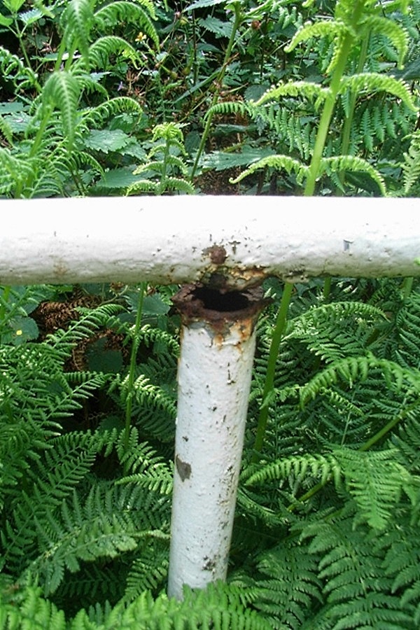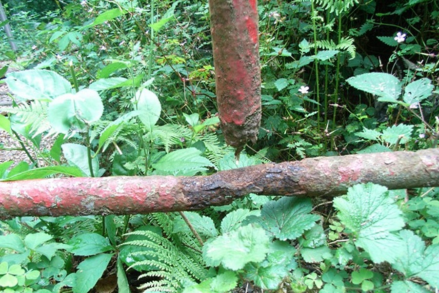 Zum Glueck spielte das Wetter fast immer mit, es war manchmal schon so heiss, dass man Angst haben musste, dass die Farbe bereits am Pinsel trocknete. Haeufig waren neben den fachlichen auch die heimatkundlichen Kenntnisse gefragt, denn immer wieder kamen von Spaziergaengern oder Radlern Fragen wie: Wohin fuehrt dieser Weg? Kommt man hier nach ....? Fuer den Historiker mag noch interessant sein, dass die meisten als Stuetzen verbauten Schienenstuecke aus den 30er oder 40er Jahren des vorigen Jahrhunderts stammen. Bei einer Schiene war sogar die Jahreszahl 1905 zu erkennen.