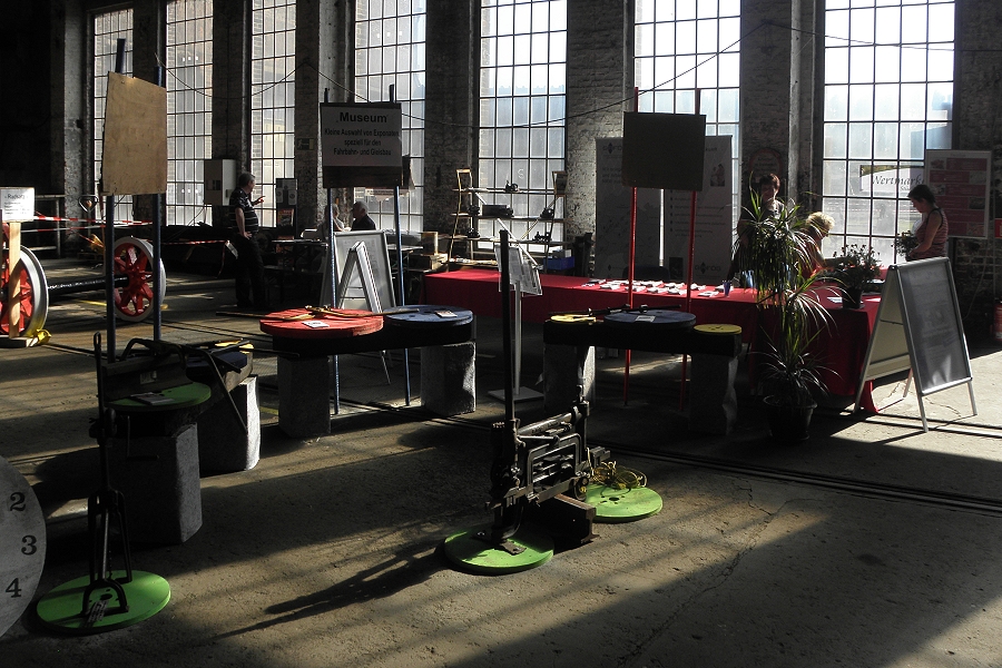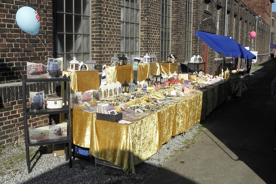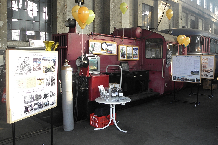 Der Infostand der Hespertalbahn an der Koef 2 in der Halle der HEG (Historische Eisenbahn Gelsenkirchen).