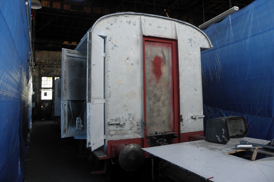 Der sich in Aufarbeitung im Bw Gelsenkirchen-Bismarck befindliche vierachsige Personenwagen "Wilhelmshavener Wagen 2352".