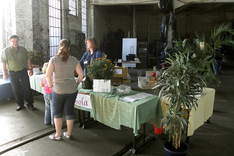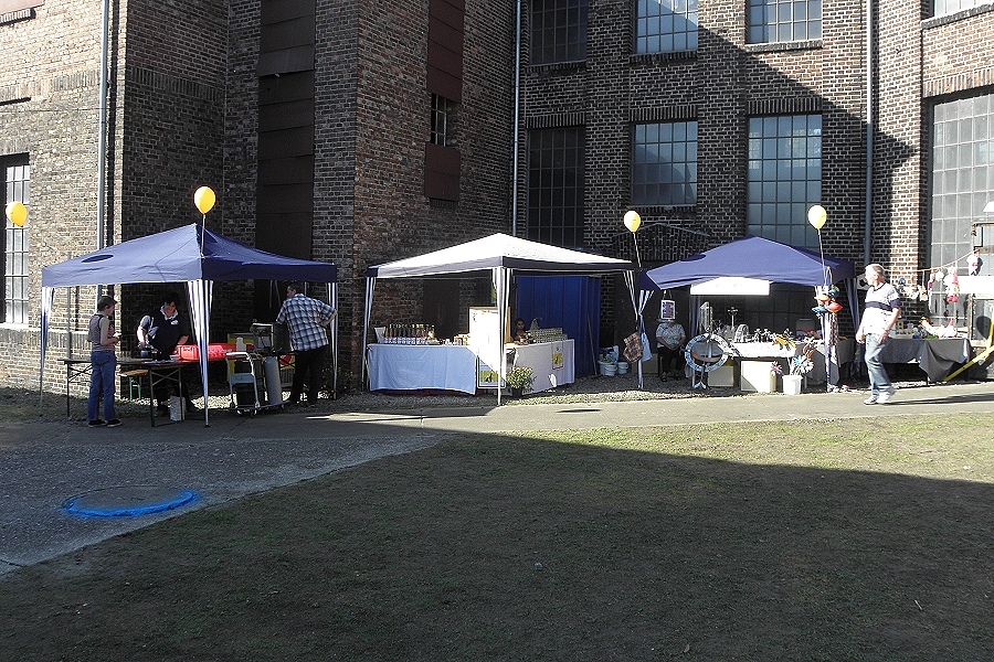 Verschiede Staende die innen wie aussen auf dem Gelaende verteilt waren.
