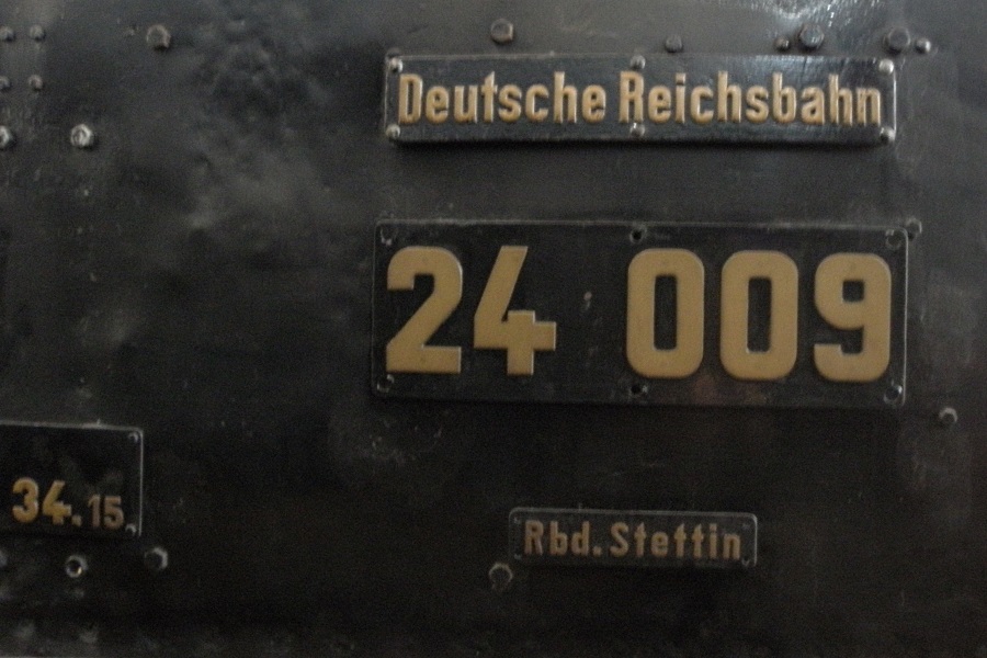 Die Dampflok 24 009, ein sog. "Steppenpferd", eine Einheits-Personenzuglokomotive insbesondere fuer flache Nebenbahnstrecken, in der Rechteckhalle der Historische Eisenbahn Gelsenkirchen.