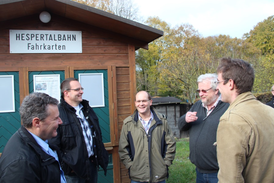 Daher lud der Vorstand zum neuen vereinseigenen Bahnsteig in Sichtweite von altem Bahnhof Essen-Kupferdreh und zukuenftigem Lokschuppen ein. Der Vorstand der Museumsbahn uebernahm mit einer Fuehrung ueber die Baustelle die Aufgabe, ueber das aktuelle und zukuenftige Vereinsgeschehen zu berichten.