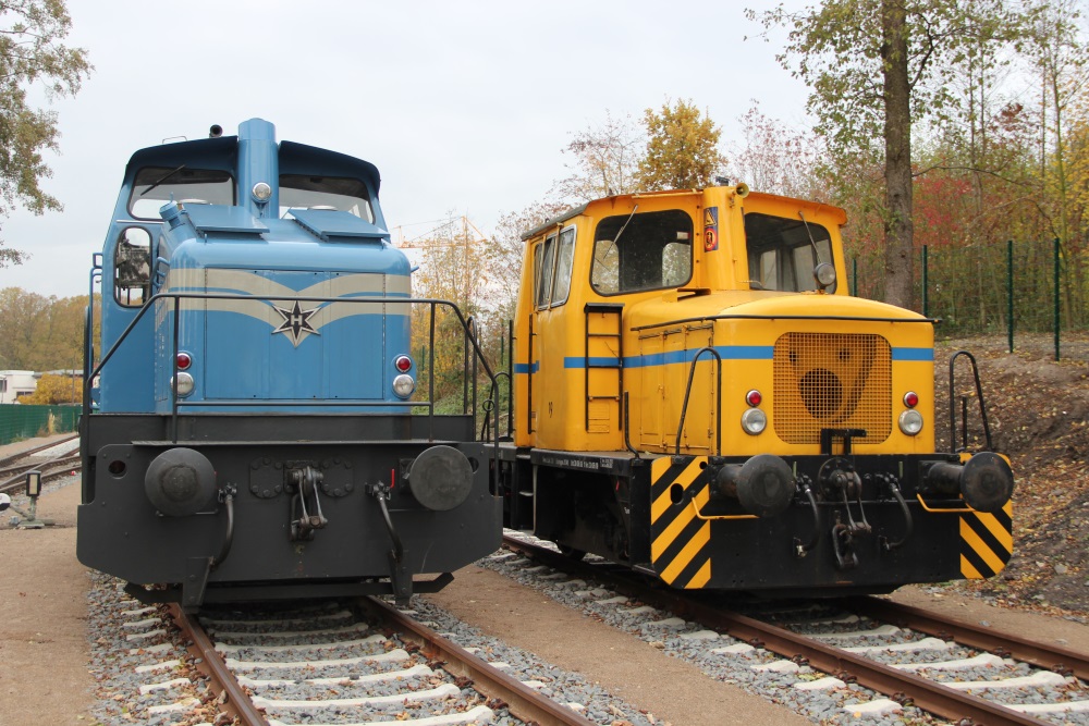 Auf den neuen Gleisen suedwestlich vor dem zukuenftigen Lokschuppens praesentieren sich die Diesellok V1 und die Diesllok V3.