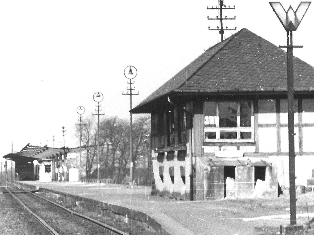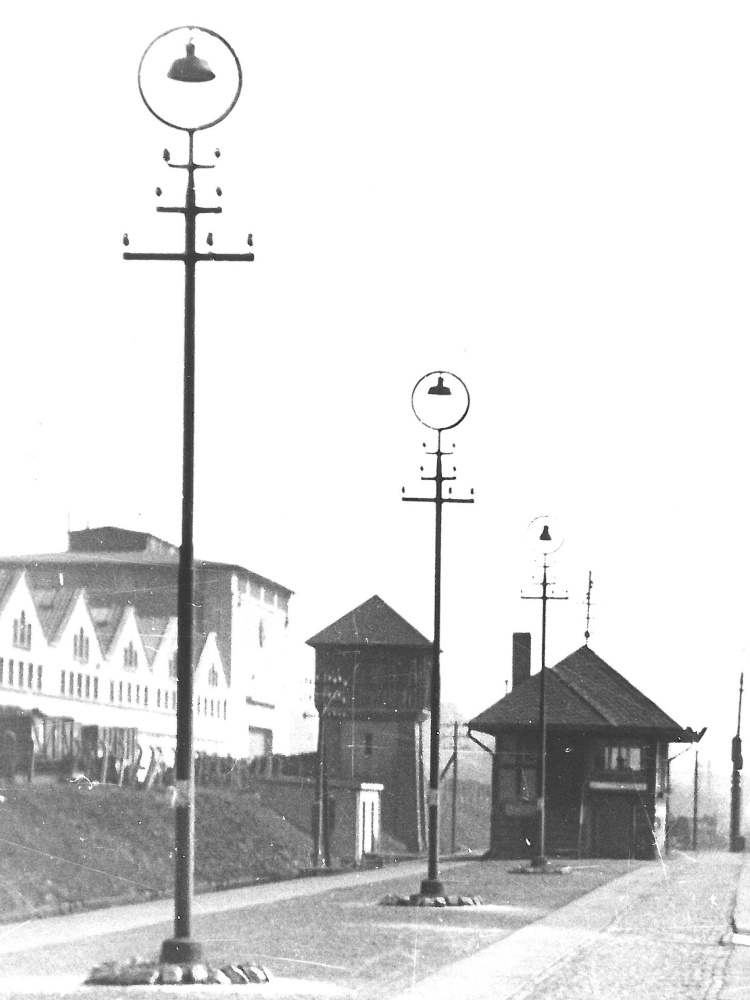 -- Wer heutzutage mit der Bahn nach Velbert reisen moechte, findet im Streckenverzeichnis der Deutschen Bahn die Haltepunkte Velbert-Rosenhuegel, -Langenberg, -Neviges und -Nierenhof, die allesamt mit der S-Bahnlinie 9 von Essen und Wuppertal aus zu erreichen sind. Nur wenigen insbesondere "juengeren Semesters" ist bekannt, dass auch das Zentrum Velberts bis in die Neunzigerjahre des 20. Jahrhunderts an das Schienennetz der Bahn angebunden war - auf der heute als Radweg noch vorhandenen "Niederbergbahn" von Wuppertal ueber Wuelfrath, Velbert und Heiligenhaus nach Kettwig. Die Strecke ging allerdings auf der gesamten Laenge erst 1926 und damit recht spaet in Betrieb. Immerhin hatte Velbert damit einen respektablen "Hauptbahnhof", der dem hohen Verkehrsaufkommen insbesondere im Stueckgutverkehr - auch die Velberter Schloesser und Beschlaege fuhren frueher einmal mit der Bahn - Rechnung trug. Wenn auch der Personenverkehr am Velberter Hauptbahnhof deutlich hinter der Bedeutung des Schienengueterverkehrs zurueckblieb, gab es doch am Hbf Velbert einen befestigten Mittelbahnsteig, der ueber eine Personenunterfuehrung vom tiefergelegenen Empfangsgebaeude aus fuer die Reisenden kreuzungsfrei erreichbar war. Zwischen Bahnsteigueberdachung am einen und Stellwerk am anderen Ende des Bahnsteigs stellte die Reichsbahn drei Bahnsteigleuchten auf, um die Fahrgaeste nicht im Dunkeln stehen zu lassen. Diese dienten gleichzeitig als Telegrafenmasten fuer die Telefonleitungen von und zum Stellwerk.