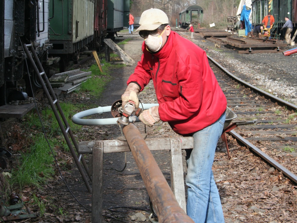 -- Das eine Museumseisenbahn nicht nur aus einer Dampflok und alten Wagen besteht, sondern auch historische Ausstattungsteile benoetigt, ist mittlerweile eine weit verbreitete Tatsache. Um auch diesem Anspruch gerecht zu werden, versucht die Hespertalbahn seit einigen Jahren, ihr Umfeld mit historischen Ausstattungsobjekten auszustatten. Der neue Museumsbahnsteig Essen-Kupferdreh der Hespertalbahn hat neben einem Bahnsteigschild auch alte Lampen erhalten. Diese stammen vom ehemaligen Bahnhof Velbert Hbf. Nach der Stilllegung des Personenverkehrs von und nach Velbert Hbf im Jahr 1960 fiel der oben beschriebene Bahnsteig nebst Ausstattung in einen Dornroeschenschlaf. Zwar wurde der Bahnhof noch viele Jahre fuer den Gueterverkehr genutzt, doch 1996 war auch mit diesem Verkehr Schluss. Einige Jahre nach Stilllegung des Gueterverkehrs ging das Gelaende in das Eigentum einer Velberter Beschlaegefabrik ueber. Einem Vereinsmitglied, als alter Velberter, wusste von den auf dem ehemaligen Bahnsteig immer noch vorhandenen Leuchten. Die Hespertalbahn hatten ja bereits die alten Lampen vom ehemaligen Bahnhof Essen-Heisingen vor der Verschrottung gerettet und auf dem Bahnsteig Zementfabrik aufgestellt. Um auch die Velberter Lampen vor der bevorstehenden Verschrottung zu bewahren, hat die Hespertalbahn mit dem Eigentuemer Kontakt aufgenommen. Nach entsprechenden Verhandlungen stiftete das besagte Velberter Unternehmen die Leuchten dem Verein. Der Verein organisierte einen LKW und mit Stromerzeuger und Flex bewaffnet, wurden die drei vorhandenen Lampen vom alten Bahnsteig geborgen. Bis die Lampen aber wieder Ihre alte Bestimmung aufnehmen konnten, sind noch einige Liter Wasser die Ruhr hinuntergeflossen. Urspruenglich war geplant, die Lampen am alten Bahnhof Essen-Kupferdreh aufzustellen. Doch durch die geplanten Umbaumassnahmen kam diese Idee nicht mehr zum Tragen. Neue Planung war nun, diese am neu zu errichtendem Bahnsteig der Museumsbahn aufzustellen.