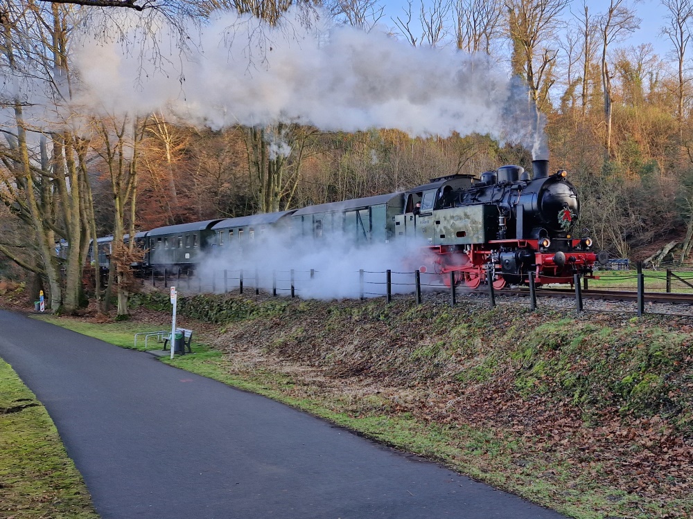 Zum Ende der Fahrsaison 2023 pendelte der Nikolausexpress der Hespertalbahn wieder 30-mal ueber die Museumsstrecke entlang des Baldeneysees zwischen Essen-Kupferdreh und Haus Scheppen in Essen-Fischlaken.