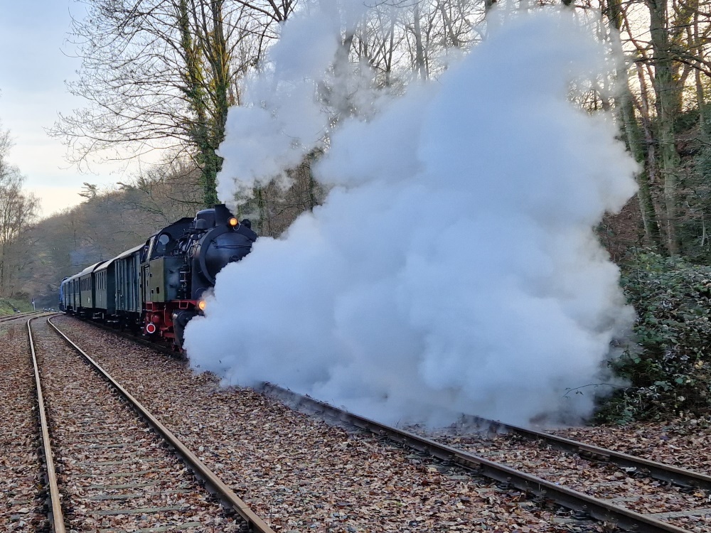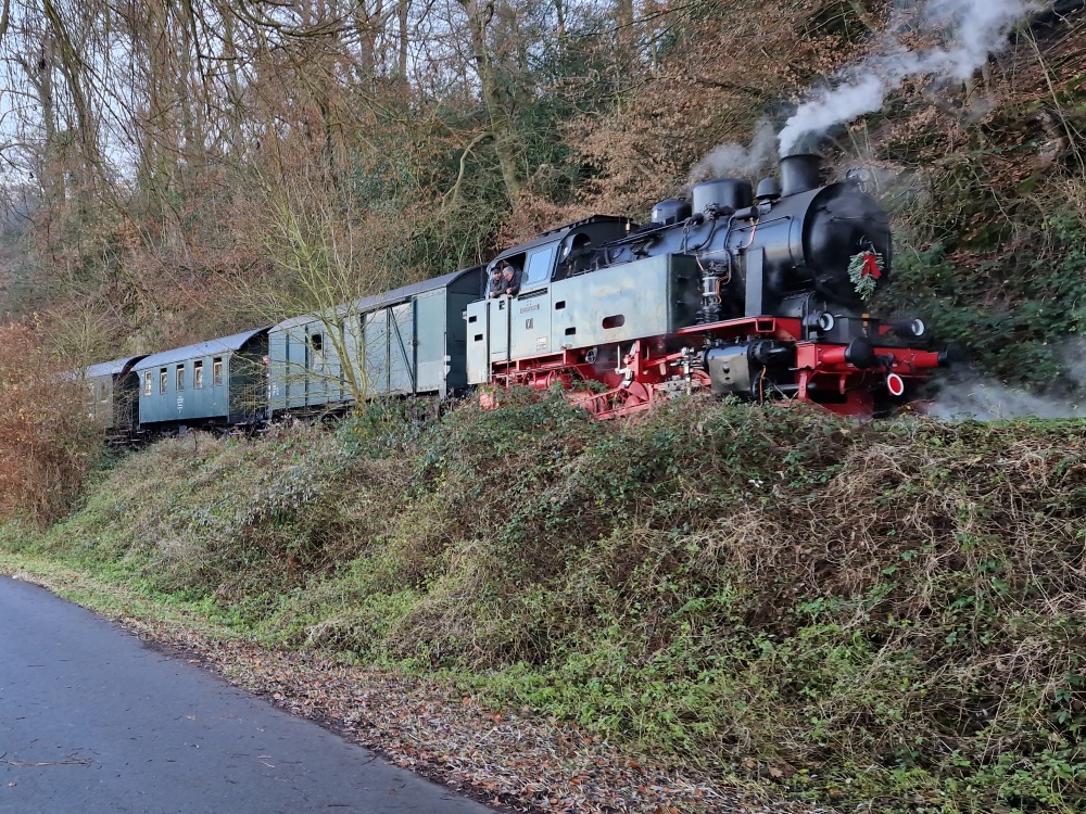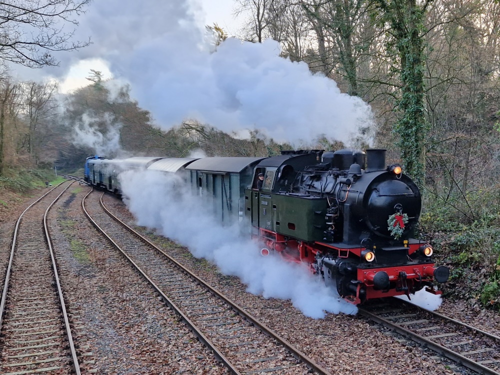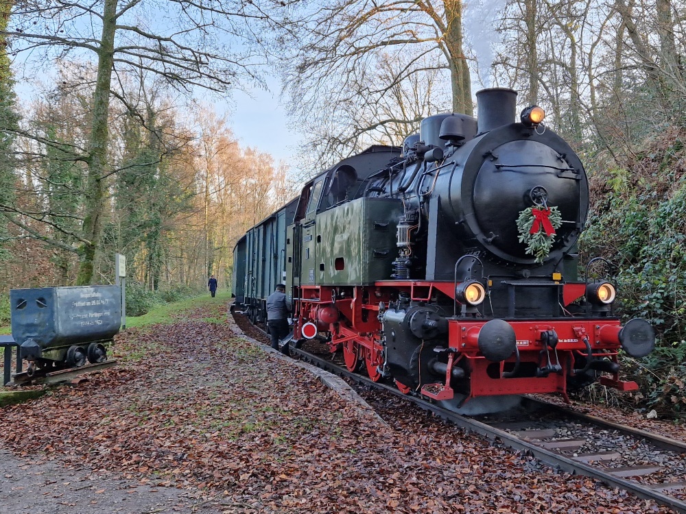 Der Nikolausexpress auf seinem Weg zum Endhaltepunkt der Museumstrecke oberhalb von Haus Scheppen in Essen-Fischlaken.